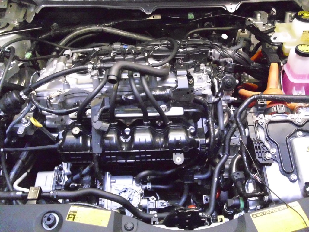 Motorraumansicht vom Toyota Prius II.Wahrscheinlich das 1.umgerüstete Fahrzeugmit Benzinantrieb,LPG und Elektroantrieb