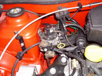 Sequenzielle Benzineinspritzung mit mechanischer Düse.Hinten Schaltblock ,vorn Benzindüse 5 mm Durchmesser