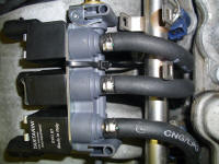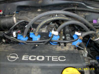 DT-Gas Einzeleinspritzdüsen beim Opel Corsa. direkt in die Nähe der Benzineinspritzdüsen